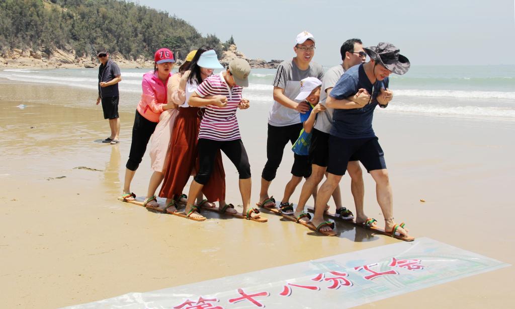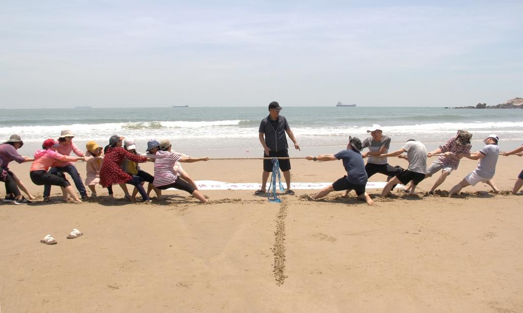 平坦的海滨沙滩上,大家拔河、板鞋竞速、滚铁环、跳绳、打排球、垂钓……尽情享受阳光、沙滩、快乐和友爱,充分体现了机关第十八部门分工会大家庭的生机与活力。